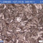 This heat-resistant austenitic steel casting is commonly used for components such as chain links or fan wheels in heat treatment plants. It exhibits increased resistance, even in carburizing atmospheres. Along the interdendritic cracks, the fine carbides have been dissolved by oxidation of chromium and carbon, hence the bright fringes. On the crack flanks themselves, at least two different oxide types can be distinguished by their gray shades.
