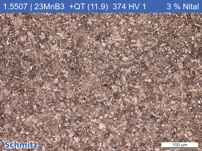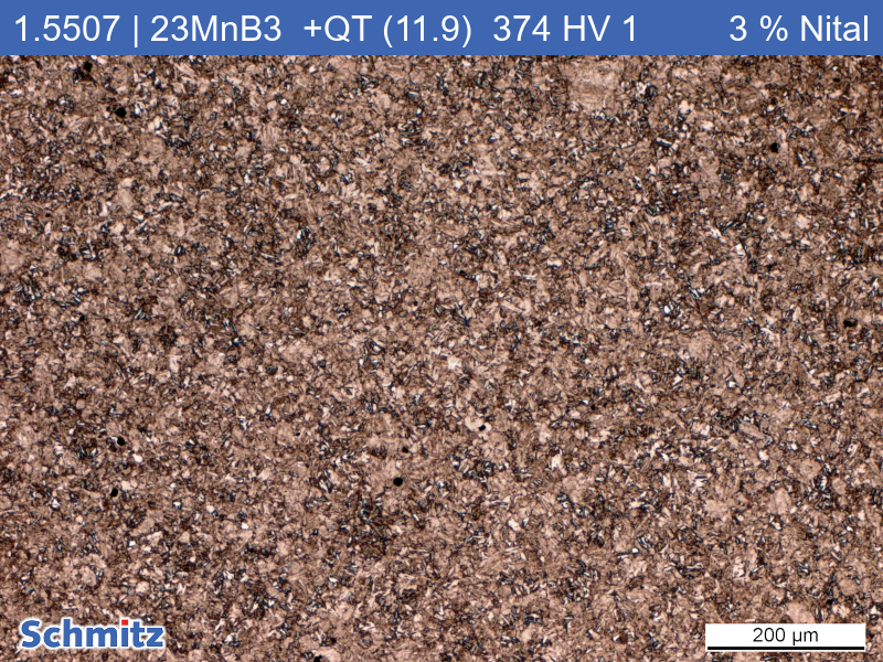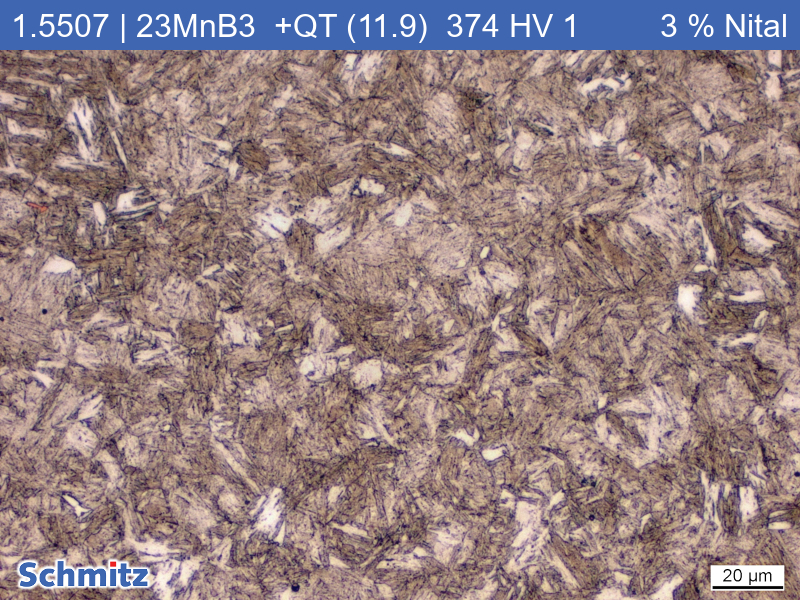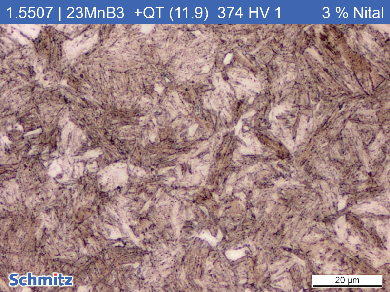 In the purely hardened state, the microstructure consists of tetragonal martensite. You can see a nice comparison of the needle structure if you compare the tetragonal martensite with the strength class 11.9.