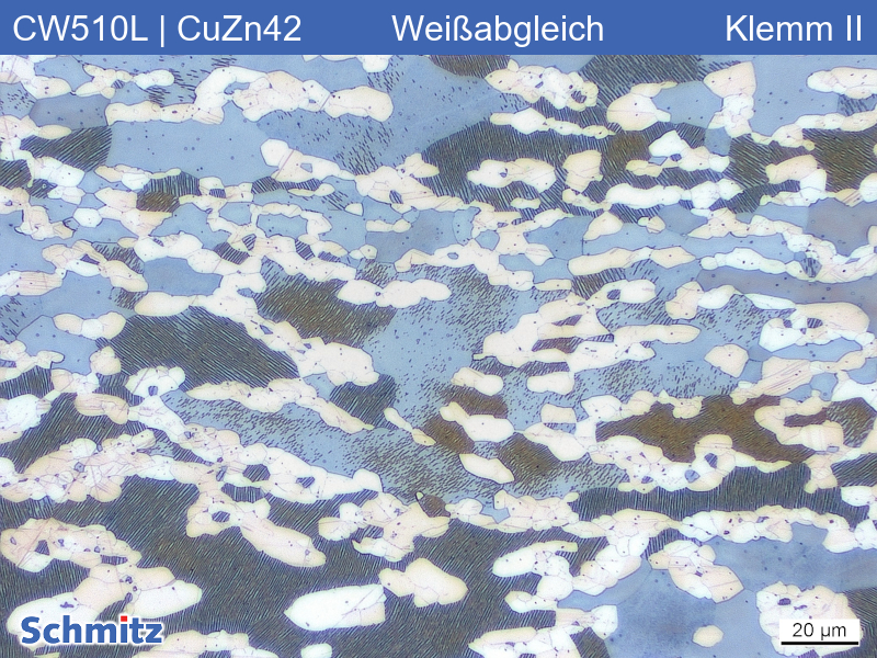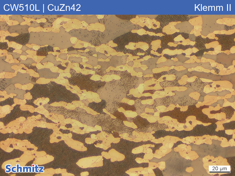 Whilst brass etching agents cause the beta phase to be etched to a degree that is partly lighter and partly darker than the alpha phase (Figure 1), clamp etching (Figure 2) allows the lighter alpha phase and the consistently darker beta phase to be distinguished more clearly by image analysis.