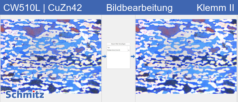 In a standard alpha-beta brass alloy, the beta phase content was to be determined using image analysis (Imagic).