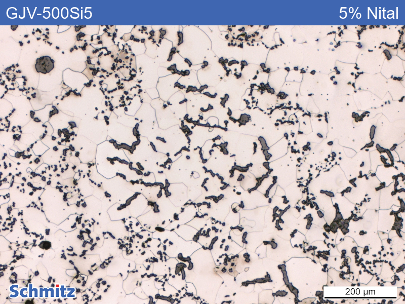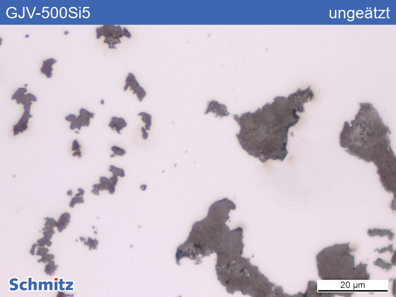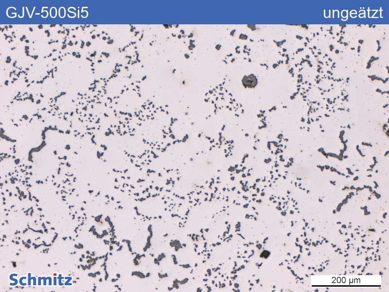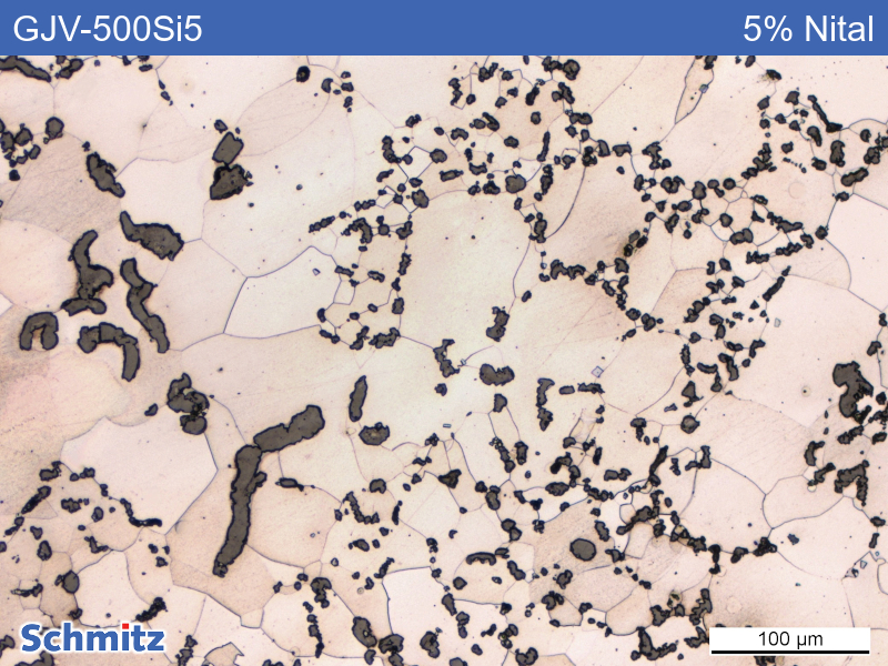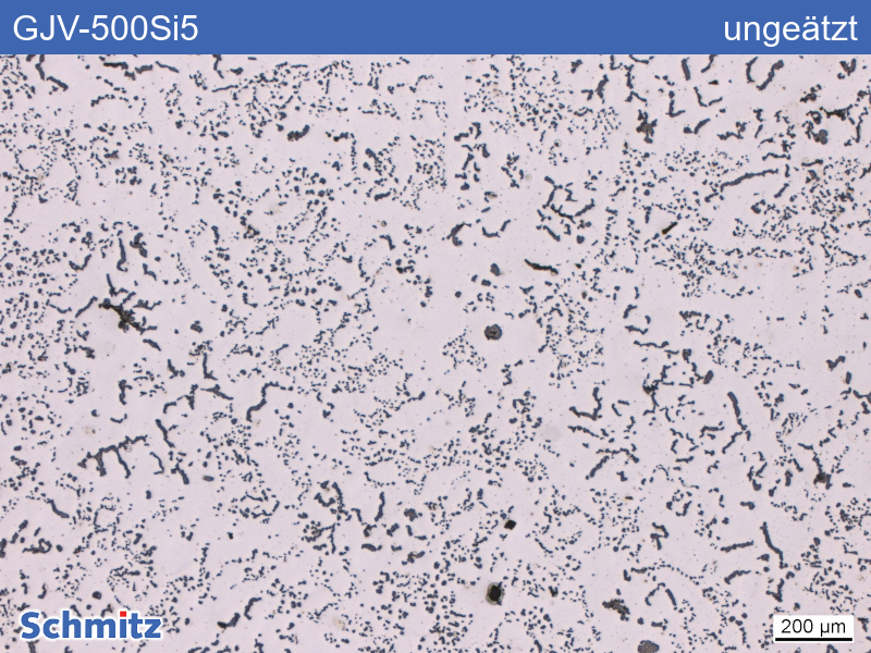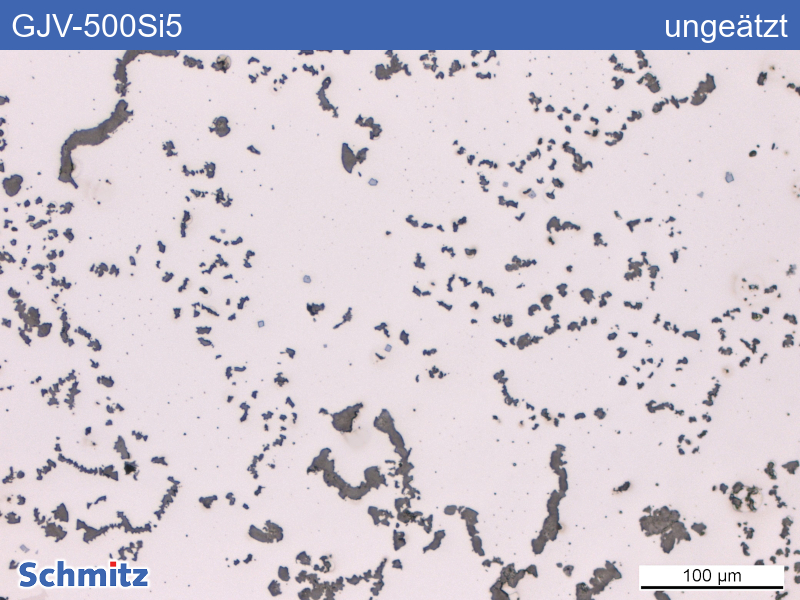 Vermicular graphite cast iron is standardised in DIN EN 16079:2013, the grades EN-GJV-300 to EN-GJV-450 are classified according to tensile strength. GJV-500Si5 is a non-standardised vermicular graphite cast iron whose high strength is achieved by a silicon content of approx. 5% (solid solution strengthening). In particular, the increased service life under thermal fatigue makes the material interesting for components with higher operating temperatures.
